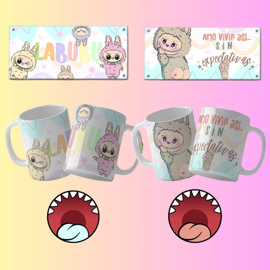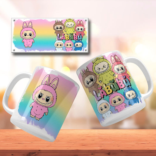 Personalizable Labubu Mug Wrap PNGs – Bottom Mouth Designs | 11 & 15oz Sublimation Templates