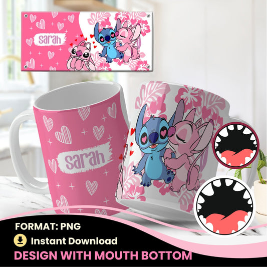 Blue Alien Pink Space Girl Mouth Bottom Mug PNG Bundle – 5 Cute Cartoon Designs | Personalizeble Name Sublimation Templates