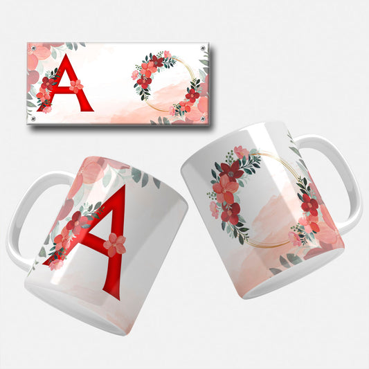 Red Floral Monogram Sublimation Files For Mugs - 26 Alphabet PNG Designs