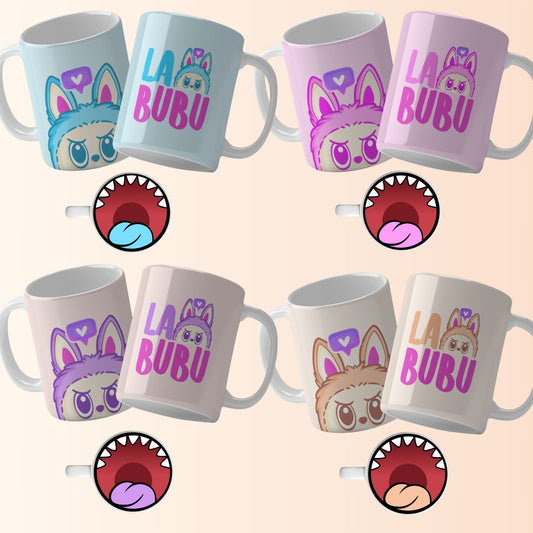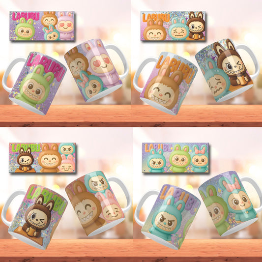 Personalizable Labubu Mug Wrap PNGs – Bottom Mouth Designs | 11 & 15oz Sublimation Templates